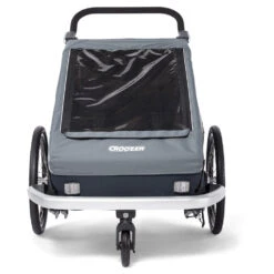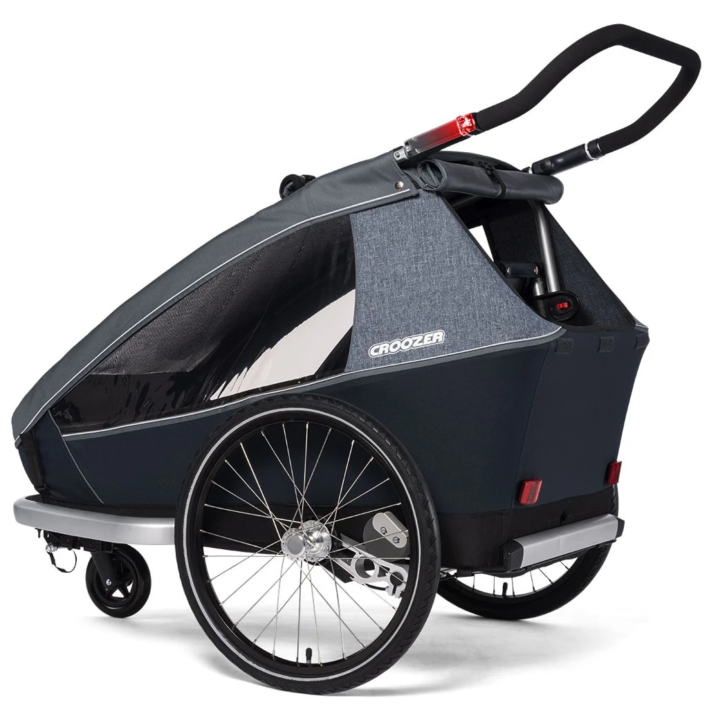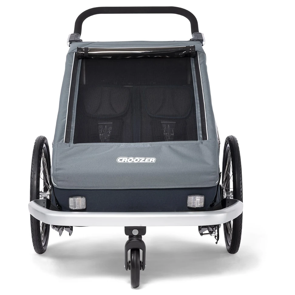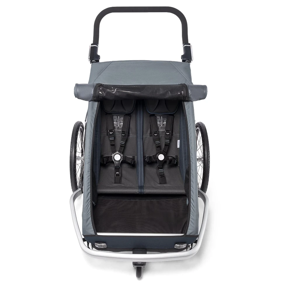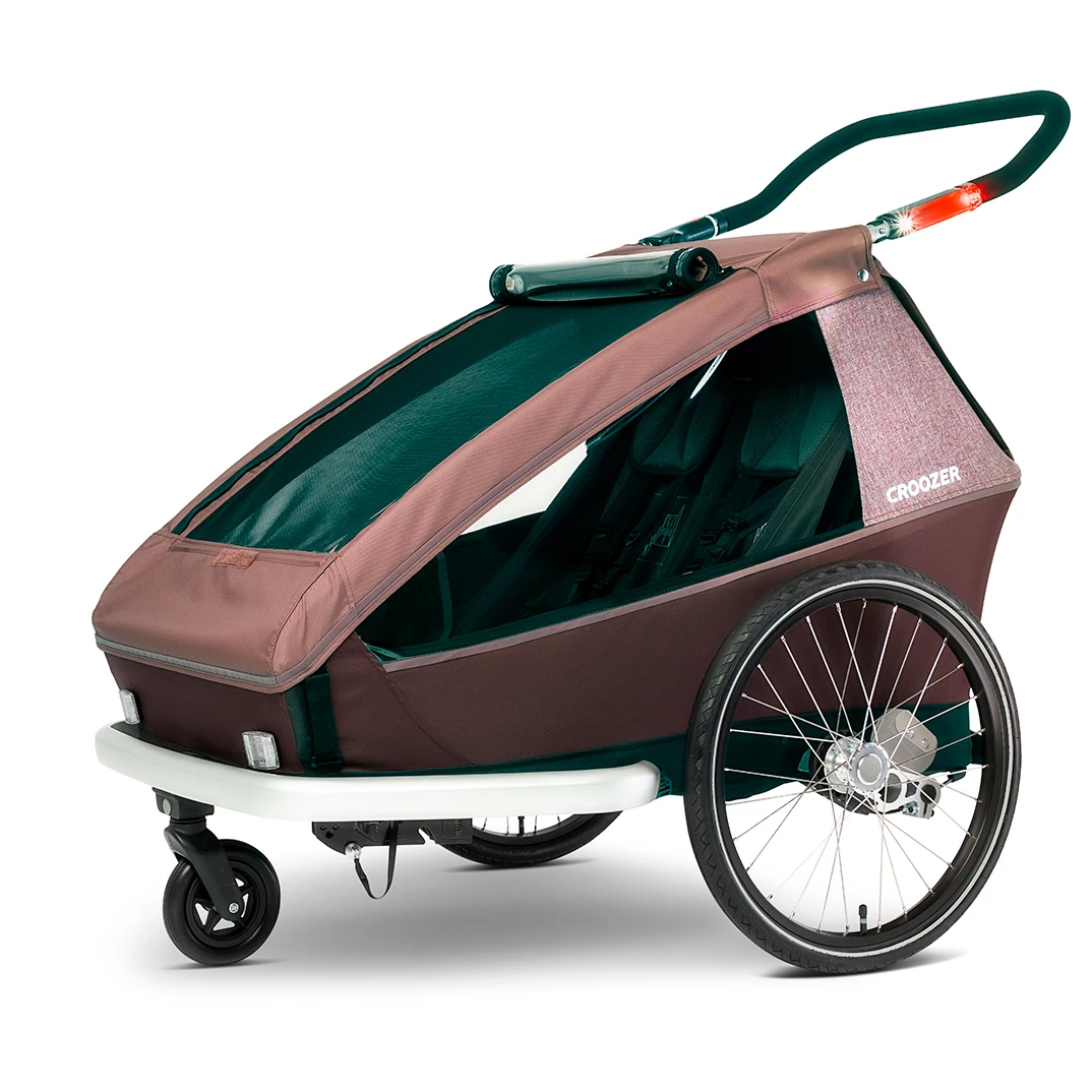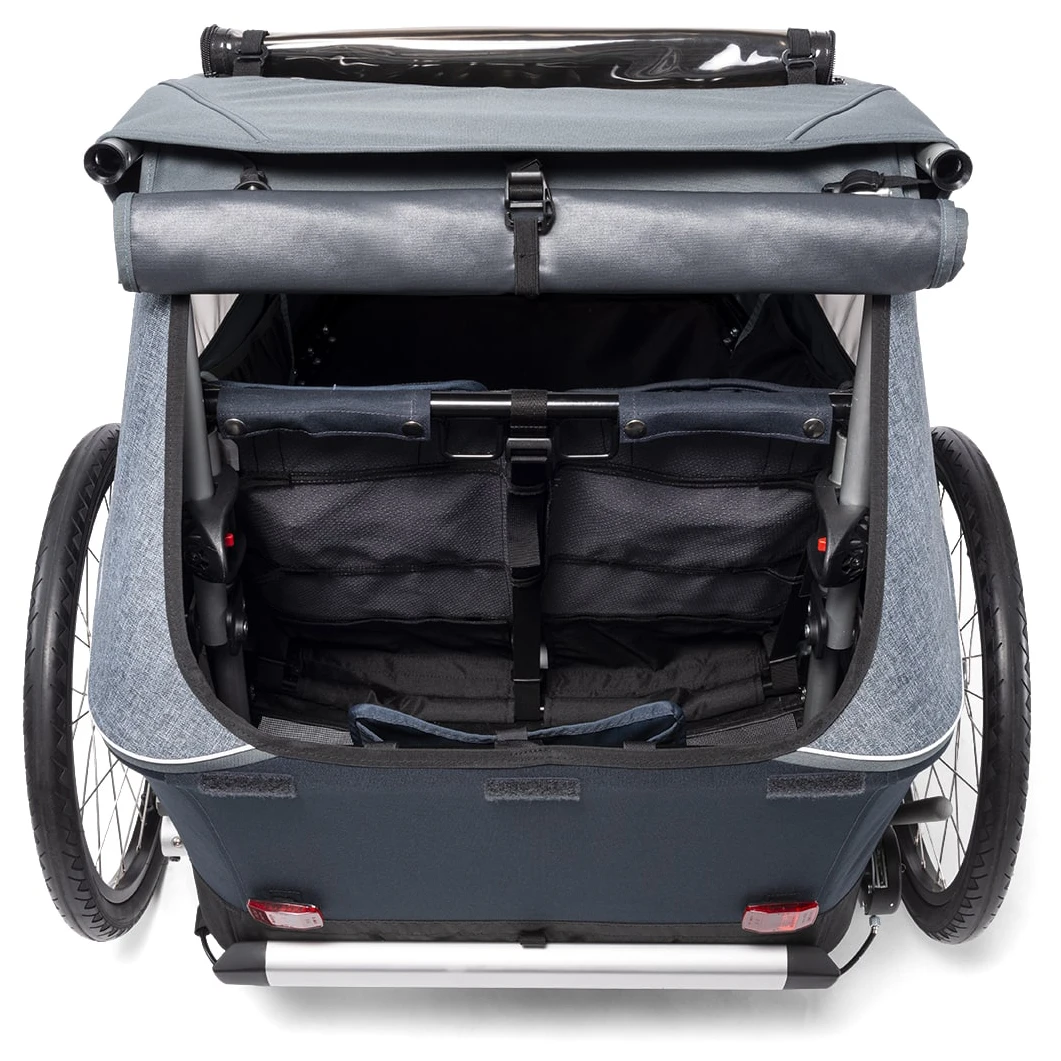The Croozer Kid Vaaya 2 offers a high level of safety in the event of accidents and vibrations with its stable safety passenger compartment and reliable 5-point safety belt. In addition, the low centre of gravity and the wide set of the wheels of the trailer ensure optimal stability even in sharp curves. Intelligent AirPad suspension ensures the smoothest possible ride, even over uneven roads and curbs. This automatically adjusts to the weight of the trailer and ensures optimum cushioning and suspension. The ergonomic individual seats made of breathable climatex material perfectly round off this comfort package.